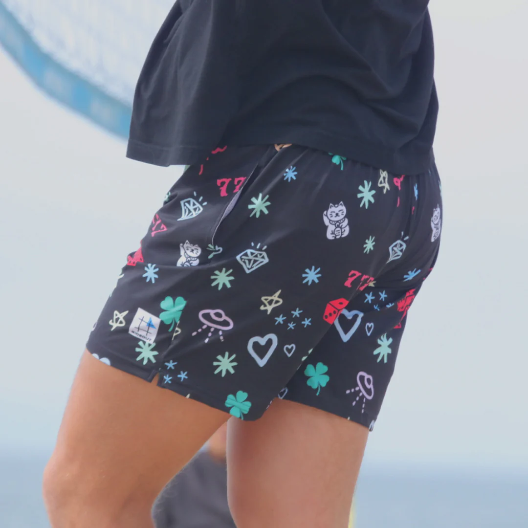The men's volley short is the ultimate performance short on the court, at the beach or in the gym. Built with a soft four-way stretch fabric, there are no restrictions with movement, and a breathable compression liner protects your thighs while keeping your legs cool. Added performance of 50+ UV protection, the men's volley short is the ultimate in technical performance, protection and versatility. Casual or high performance volleyball shorts handmade locally in our factory Merch Farm.